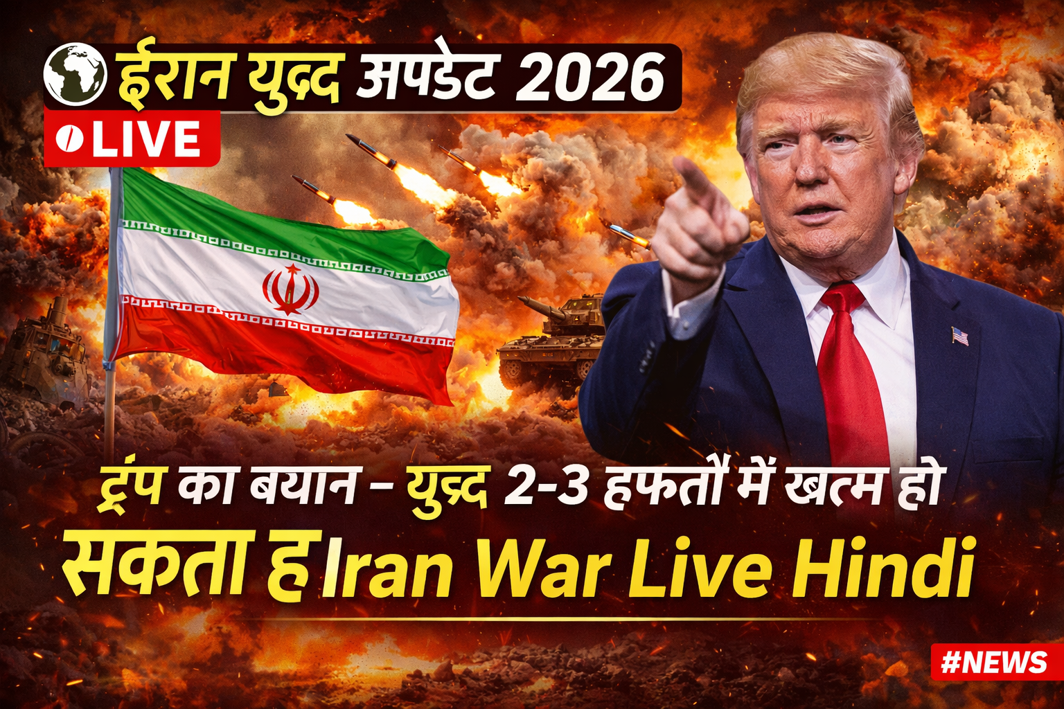 ईरान युद्ध अपडेट 2026: ट्रंप का बयान – युद्ध 2-3 हफ्तों में खत्म हो सकता है | Iran War Live Hindi